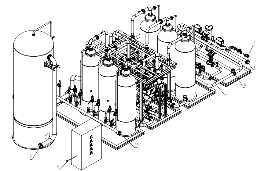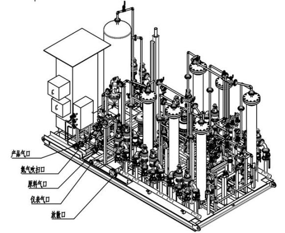 該項目采用上海優華公司的成套撬裝旋轉閥PSA于2021年實施,提純系統的整體占地長*寬為4.8*2.5米。