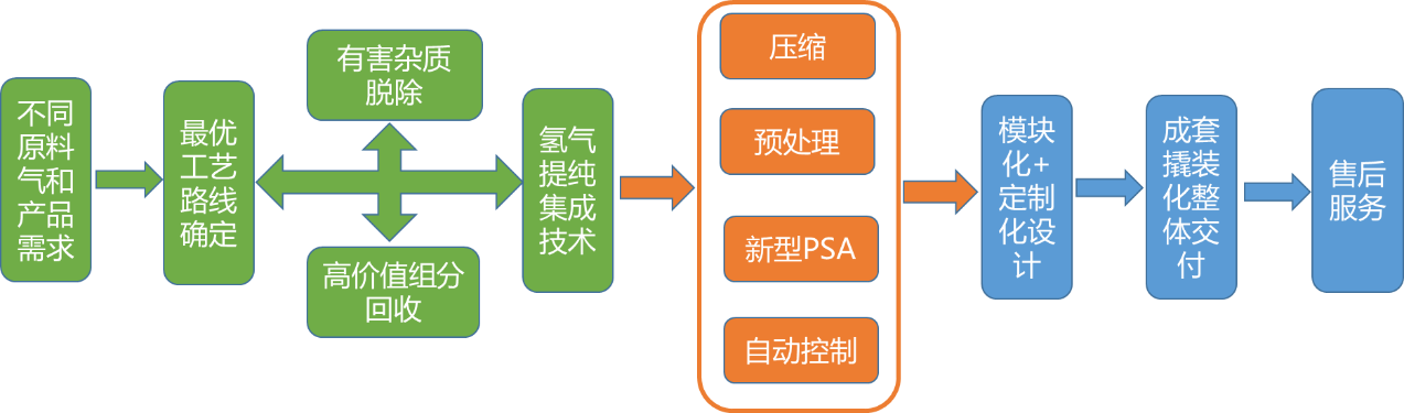 上海優華系統集成技術股份有限公司基于在石油化工企業多年的技術服務和工程實施的經驗積累,創建了“氫必優®”商標品牌,形成了一套自主知識產權的氫氣提純整體解決方案和集成技術。通過整合國內外先進、成熟的工藝技術,選擇最優的工藝路線,開發了集工藝技術、控制系統和硬件設備于一體的嵌入式模塊化撬裝系統,生產出質優價廉的氫氣產品,能同時解決了企業的共性問題和個性化需求,實現用戶氫資源最優化的利用。