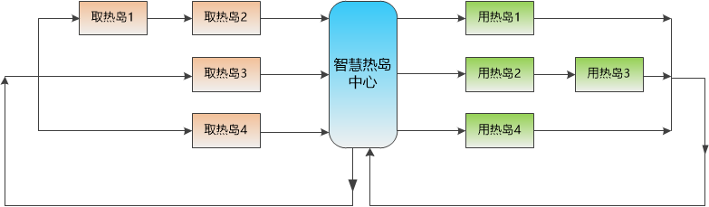 智慧熱島余熱利用技術主要包括取熱島、用熱島和熱島中心。
